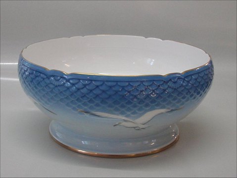 Beskrivelse: Bing & Grøndahl Mågestel med guldkant 047 Jordbærskål på fod 25 x 11 cm
