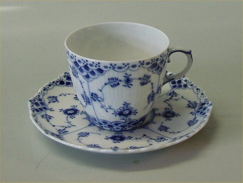 Kongelig Dansk Porcelæn Musselmalet Helblonde 1035-1 Kop og underkop 7 cm I fin og hel stand