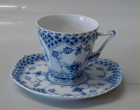 Royal Copenhagen Musselmalet Helblonde 1036-1 Stor kaffekop og underkop , kantet form 14 cl (69-70)