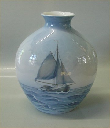 : B&G 8779-506 Vase marinemotiv - sejlskib 24 cm 2. sortering I fin og hel stand