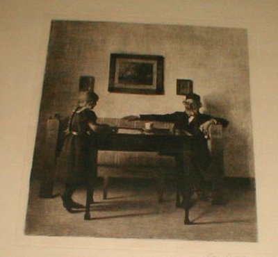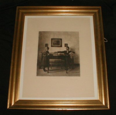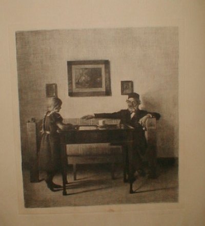 Beskrivelse: Sort Radering Opus 46. Hos Bedstefader 30,2 x 27,2 cm 1901 Signeret med blyant.