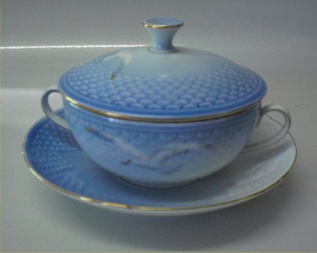 Bing & Grøndahl Mågestel med guldkant. 247 Bouillonkop med låg 3 dl (481) I hel og fin stand