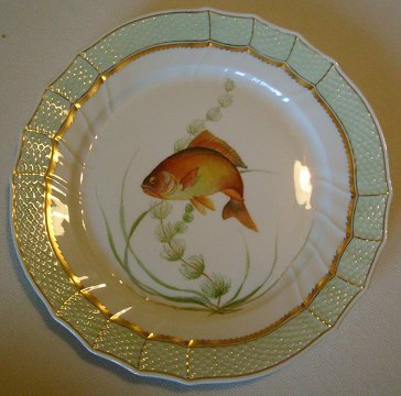 Den Latinske inskription bag på tallerkenen er: "Cyprinus auratus". 25,5cm dia. I hel og perfekt stand.