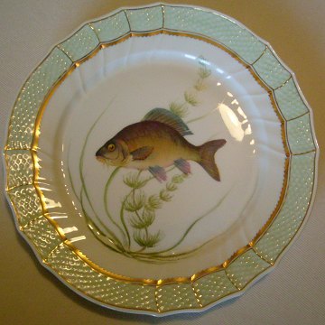 Den Latinske inskription bag på tallerkenen er: "Cyprinus carpio". 25,5cm dia. I hel og perfekt stand.