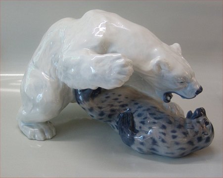 1108 Isbjørn med sæl KK ca 23 x 37 cm 1909 Kongelig Dansk Porceclæn