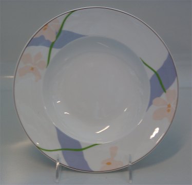 Beskrivelse: BLÅ Bing & Grøndahl B&G Orkide, Blå: Hvidt porcelæn, pastelagtige blå og grå farver (også med lysegrøn fond) I fin og hel stand Bing & Groendahl