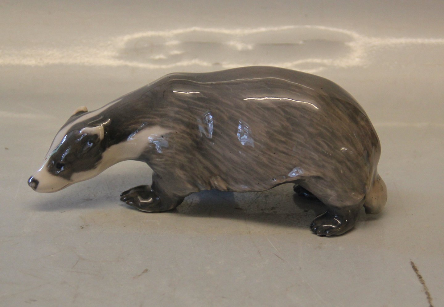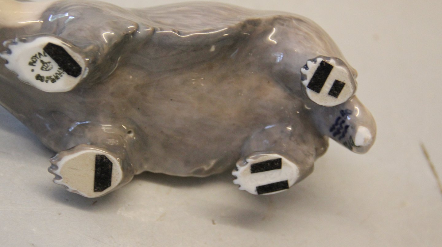 : Kgl. figur fra Royal Copenhagen 1209 Grævling 9 x 19 cm før 1923 I hel og fin stand
