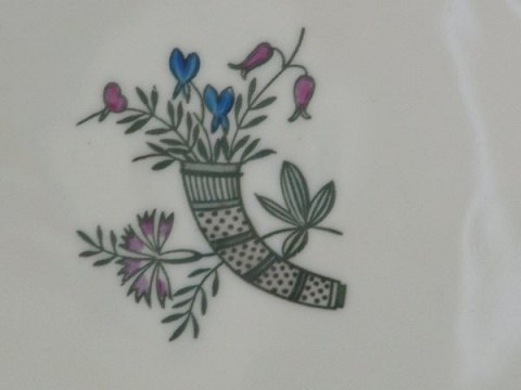 Kgl. Blomsterhorn # 957 med blå kant, horn med røde og blå blomster