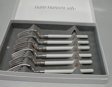 : Dansk Sølv Hans Hansen Amalie Sterlingsølv med hvid emalje. Som nye i originale bokse.