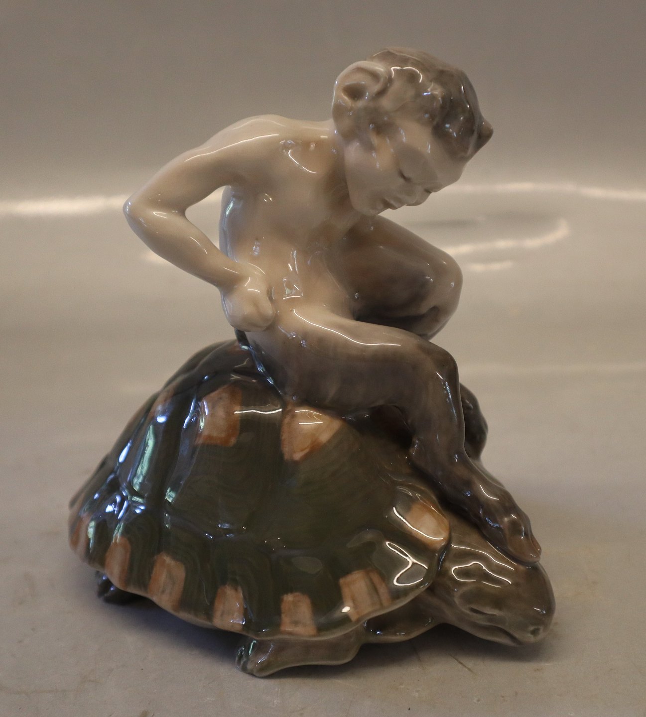 Beskrivelse: Kgl. fra Royal Copenhagen 1880 Faun på Skildpadde KK I hel og fin stand Knud Kyhn