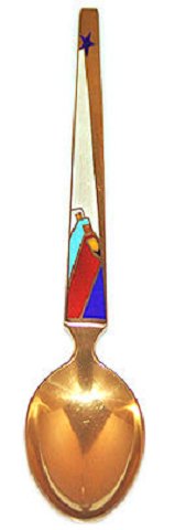 Beskrivelse: Anton Michelsen Juleske 1958 Østens vise mænd Forgyldt sølv med emaljedekoration. Design: Karl Gustav Hansen Siden 19 10 har forskellige kunstnere designet en årsske ved juletid og siden også en tilsvarende årsgaffel. Juleskeer og julegafler i forgyldt sølv med emaljedekorationer blev først skabt hos sølvfirmaet A. Michelsen og blev i 20 03 overtaget af Georg Jensen. I 20 06 blev gaflen taget ud af produktion