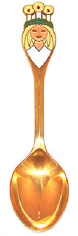 Anton Michelsen Juleske 1959 Santa Lucia Forgyldt sølv med emaljedekoration. Design: Henry Thelander
