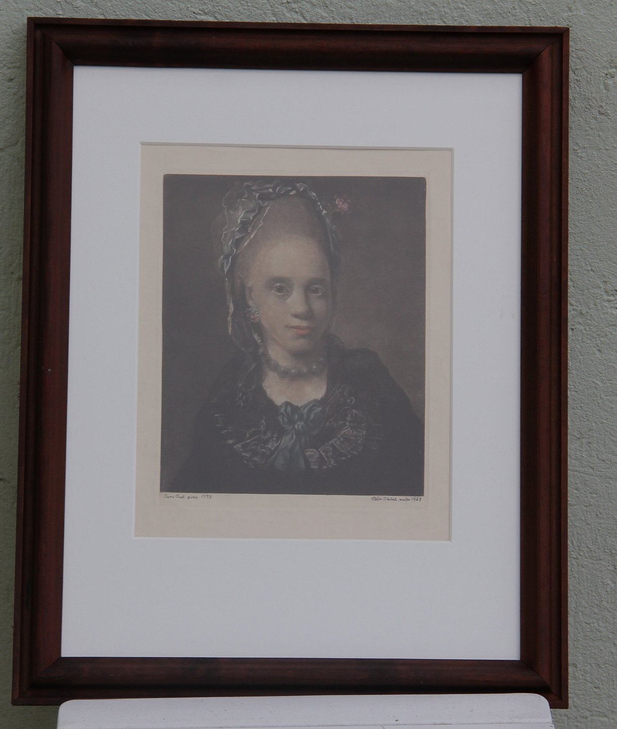 Beskrivelse: Opus 55 Peter Ilsted Farvemezzotinte Adelskvinde Efter Jens Juel Pinx 1795 Signeret Peter Ilsted Sculpt 1929 Lysmål 21,4 x 26,7 cm