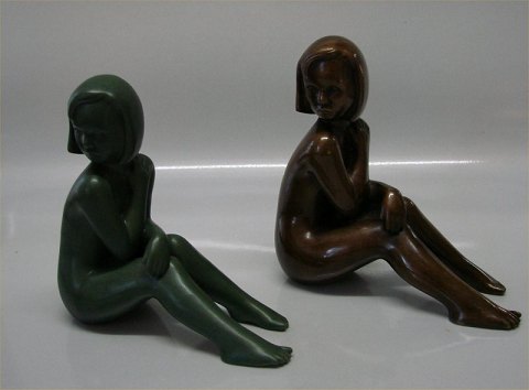 Beskrivelse: Sjældent set bronze af Johannes Hedegaard - figuren kaldes Susanne og er også lavet for Ipsen Keramik i grøn Jadeglasur 17 x 17 cm Signeret H i en cirkel