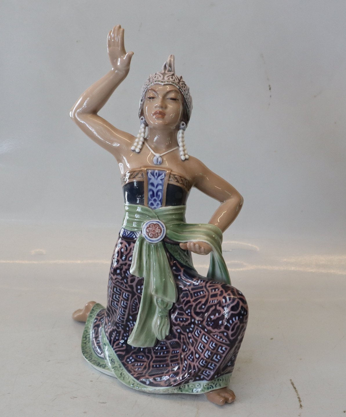 Dahl Jensen Orientalsk figur 1208 Sumatra-danserinde 30,5 cm (DJ). Mærket med kongelig krone og DJ Copenhagen i hel og fin stand.