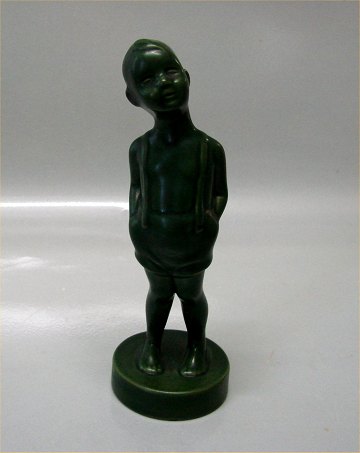 Beskrivelse: 925 Buksetrold (Drengefigur) Verner Hancke 17,5 cm ca 1941 Keramik fra P. Ipsens Enke Kgl. Hof. Terracottafabrik 1843-1955 Ibsen Grøn glasseret