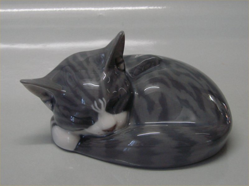 Beskrivelse: Kgl. figur fra Royal Copenhagen 0422 RC Kat gråstribet Erik Nielsen 8 x 13 cm I hel og fin stand Kitty Cat