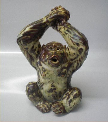 Kongelig Dansk Stentøj 20227 Kgl. Abe med løftede arme - Gorilla ? KK 22 cm August 1930