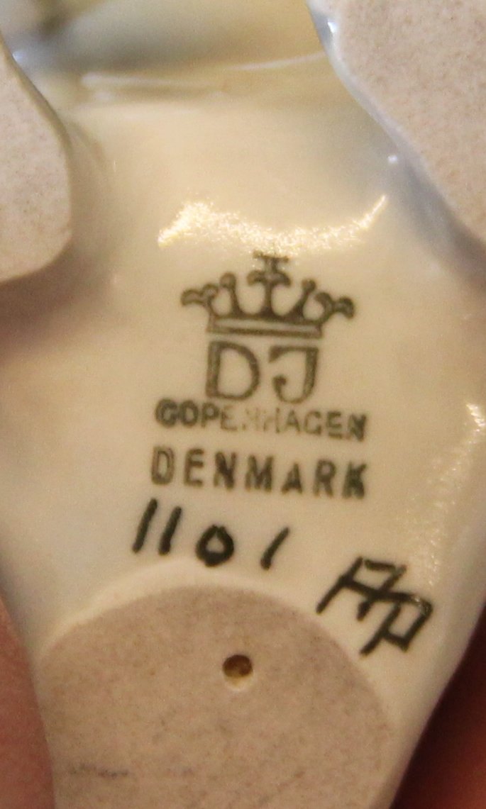 Beskrivelse: Dahl Jensen fugl. 1101 Pingvin (DJ) 7,2 cm Mærket med kongelig krone og DJ Copenhagen 2. i hel og fin stand.