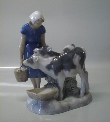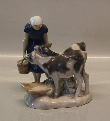 Bing & Grøndahl B&G 2270 Bondepige med 2 kalve Axel Locher 17 x 22 cm I fin og hel stand.