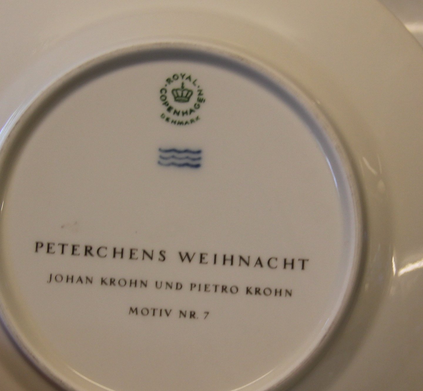 Beskrivelse: Peters Jul Platter fra den Kongelige Porcelænsfabrik. Motiver udført at Pietro Krohn og Johan Krohn. Måler 18,7cm