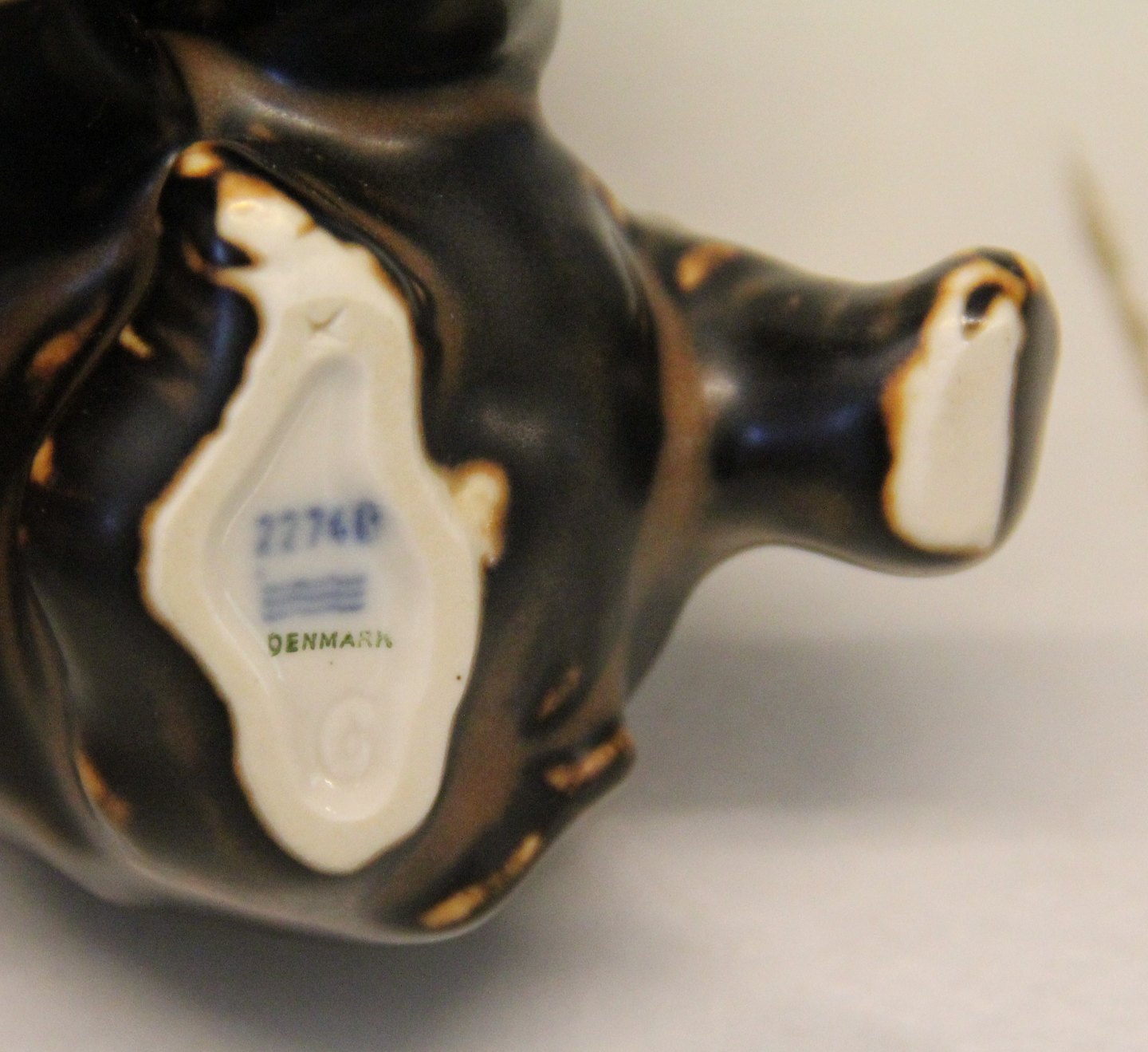 Beskrivelse: Royal Copenhagen stentøj 22740 Kgl. Elefantunge, siddende mar. 1982 JG 8 cm I fin og hel stand
