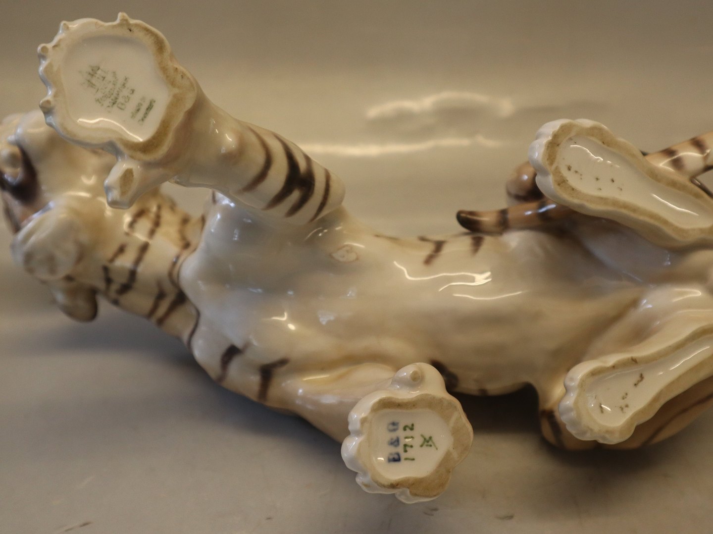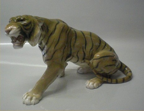 Bing & Grøndahl B&G 1712 Snerrende tiger 29 cm I fin og hel stand. Lauritz Jensen 1859 – 1935