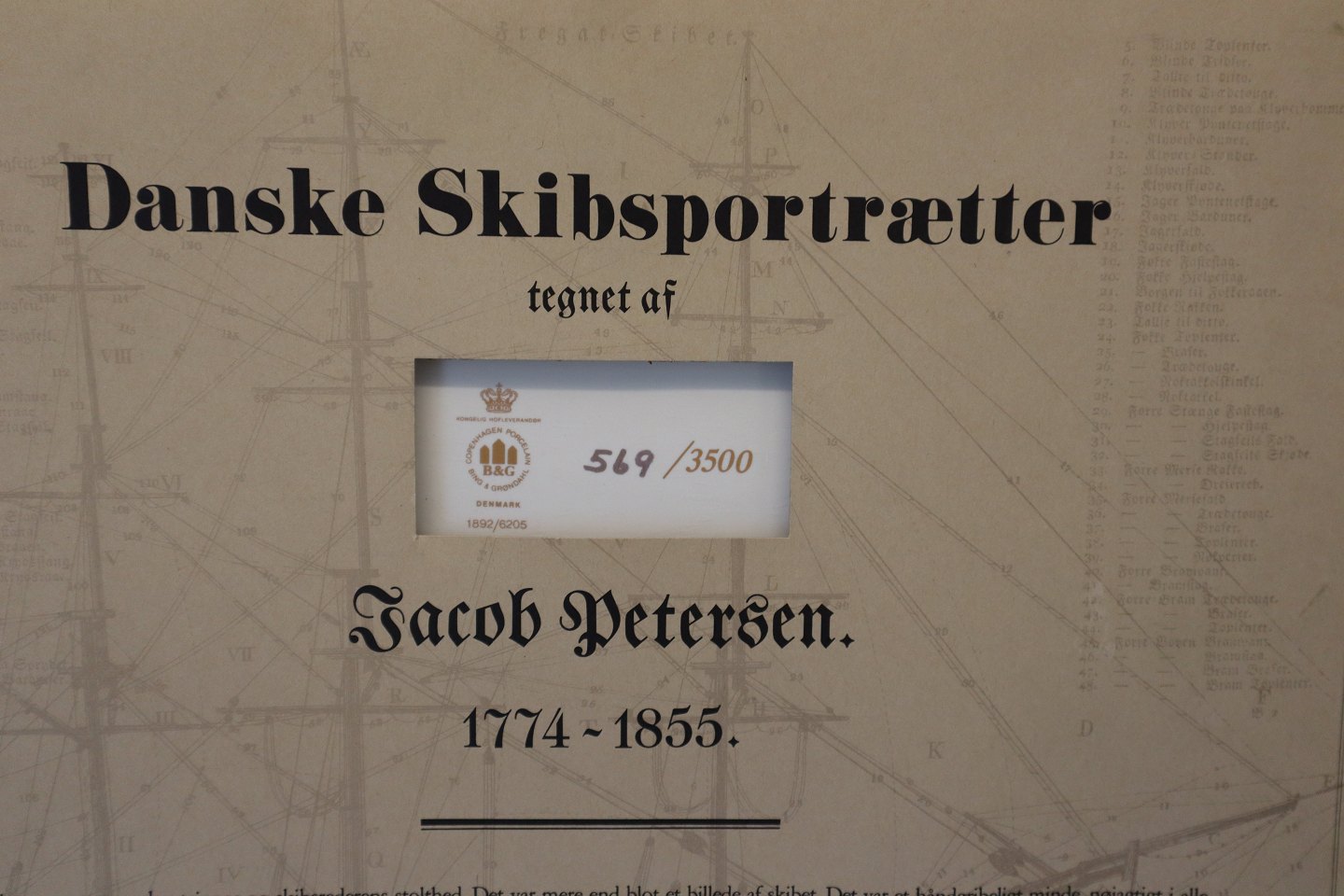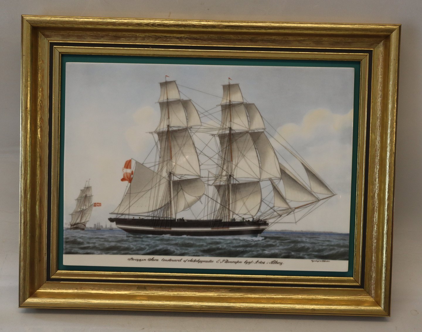 Bing & Grøndahl B&G Danske Skibsportrætter Jakob Petersen 1774 - 1855 nr. 569 af 3500 Briggen Sara Konstrueret af Skibsbygmester E.P. Bonnesen. Bygget Anno 1836 i Ålborg 30,5 x 28,5 cm