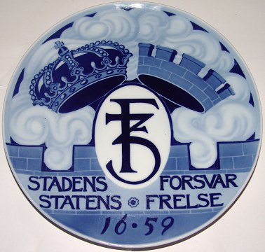 Beskrivelse: Norsk Porsgrund mindeplatte. Indskription: F3 (Kong Frederik d. 3.) Standens Forsvar Statens Frelse 1659. In perfekt stand og måler 23,3cm