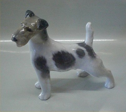 : Kgl. figur fra Royal Copenhagen Hund 2967 Ruhåret Fox terrier PL.H 17 cm 1928 Wirehaired Platten Hallermund