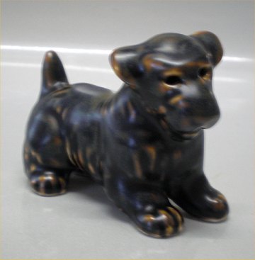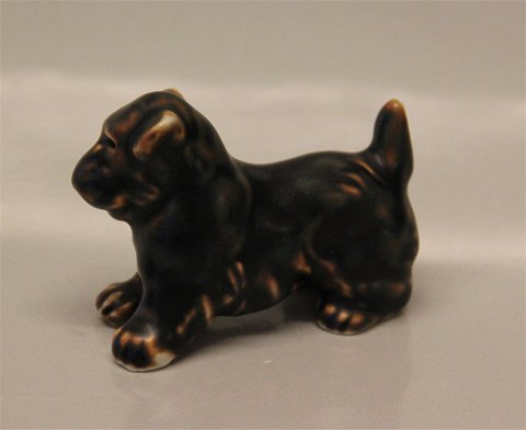Beskrivelse: Royal Copenhagen stentøj hund 22773 Kgl. Terrier, stående 8 x 6.4 cm -efter Knud Kyhns 20231 marts 1984 redesign Jeanne Grut - JG I fin og hel stand