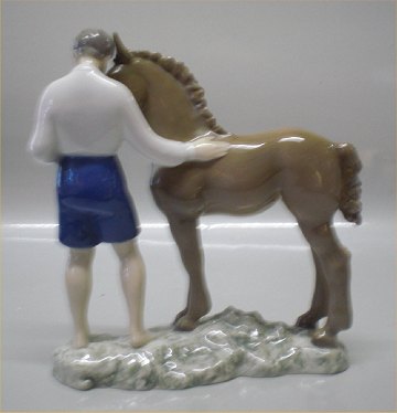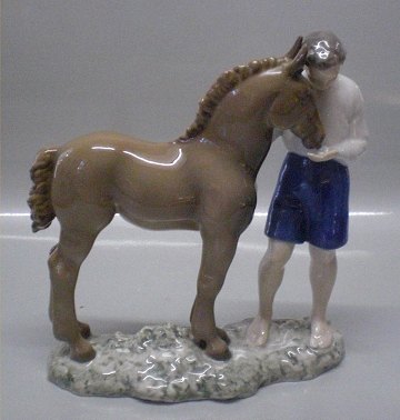 Beskrivelse: Bing & Grøndahl hestefigur B&G 2195 Dreng med Føl Design Axel Locher 18,5 cm I fin og hel stand. 2.