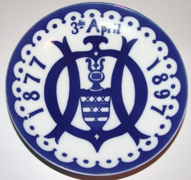 Beskrivelse: Kgl Porcelæn Mindeplatte fra 1897. Måler 18 cm og er i perfekt stand. Se billede #2. Inskription i bunden lyder "Efter opgiven Tegning".