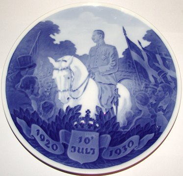 Kgl Porcelæn Mindeplatte fra 1930 #263 Genforeningsplatter Christian X til hest