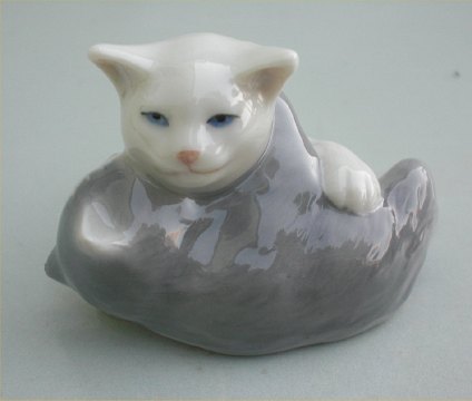 Beskrivelse: Kgl. figur fra Royal Copenhagen 683 Kgl. Minikattene "Hannibal & Hagar" 5 x 9 cm Mini Cat collection