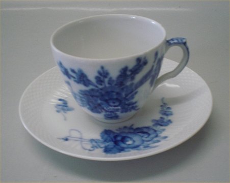 Kongelig Dansk Porcelæn Blå Blomst Svejfet 1870-10 Kop 8 cm (072) og underkop 14 cm I fin og hel stand